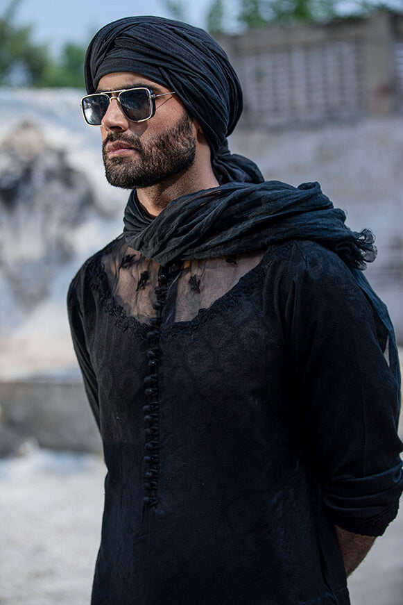 Self cotton khaddi Dori work on the neckline with sheer organza Paired with cotton trouser.