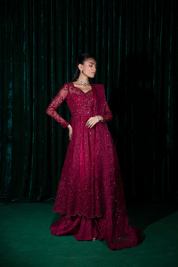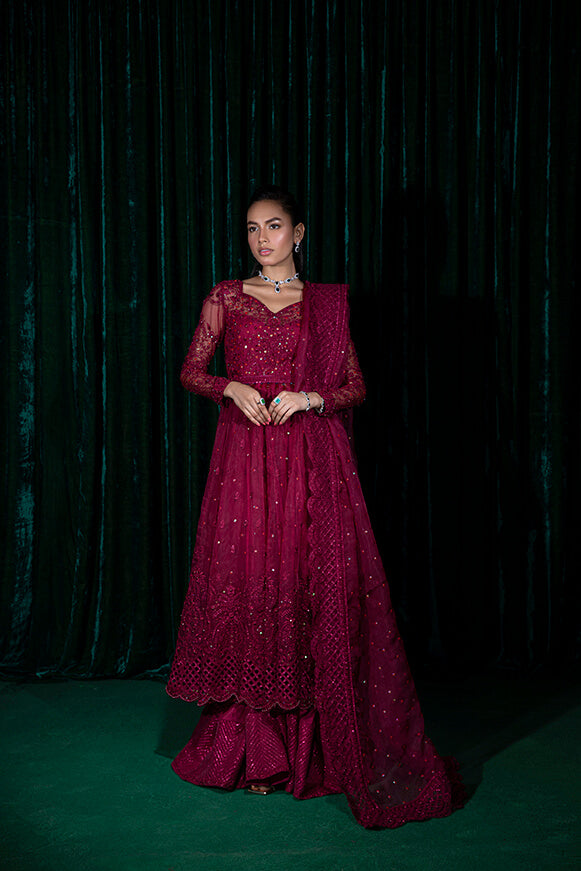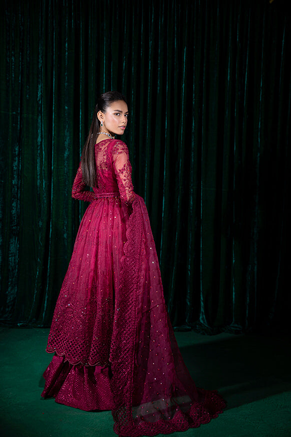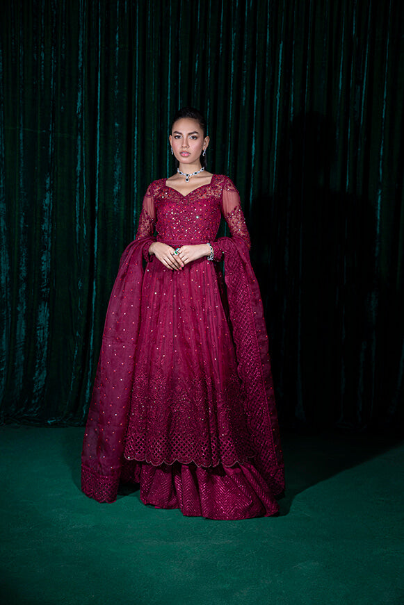 9 yards of pishwas with detailed handwork and cut work paired with 8 yards of lehnga with intricate work border and 3 yards of dupatta with four aide borders.