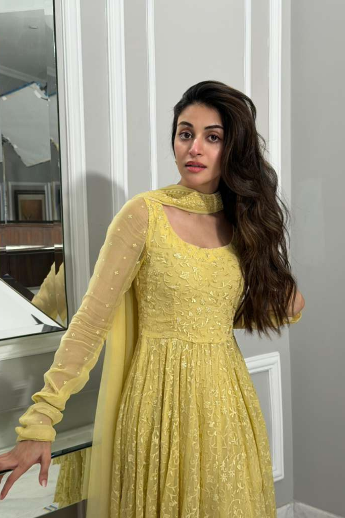 Coordinated Drape: A perfectly matched, finely detailed dupatta (scarf) completes the timeless ensemble, adding an extra layer of soft, flowing architecture.