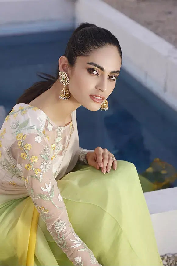 Curated on Silk chiffon with hand embroidered blouse. We do not believe in standard measurements so, it will be crafted according to your size chart. Please provide us your accurate size measurements to be treated like Aylin.