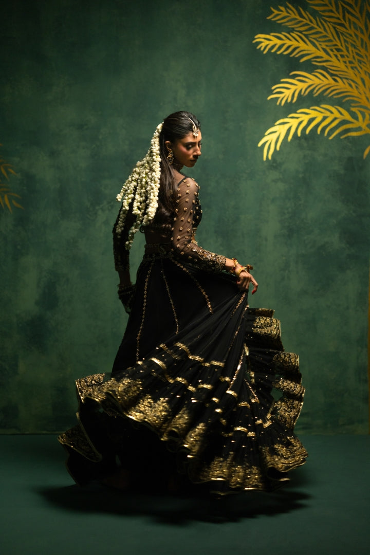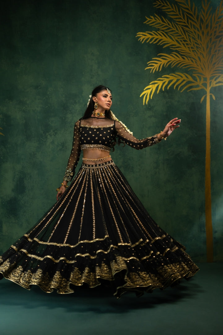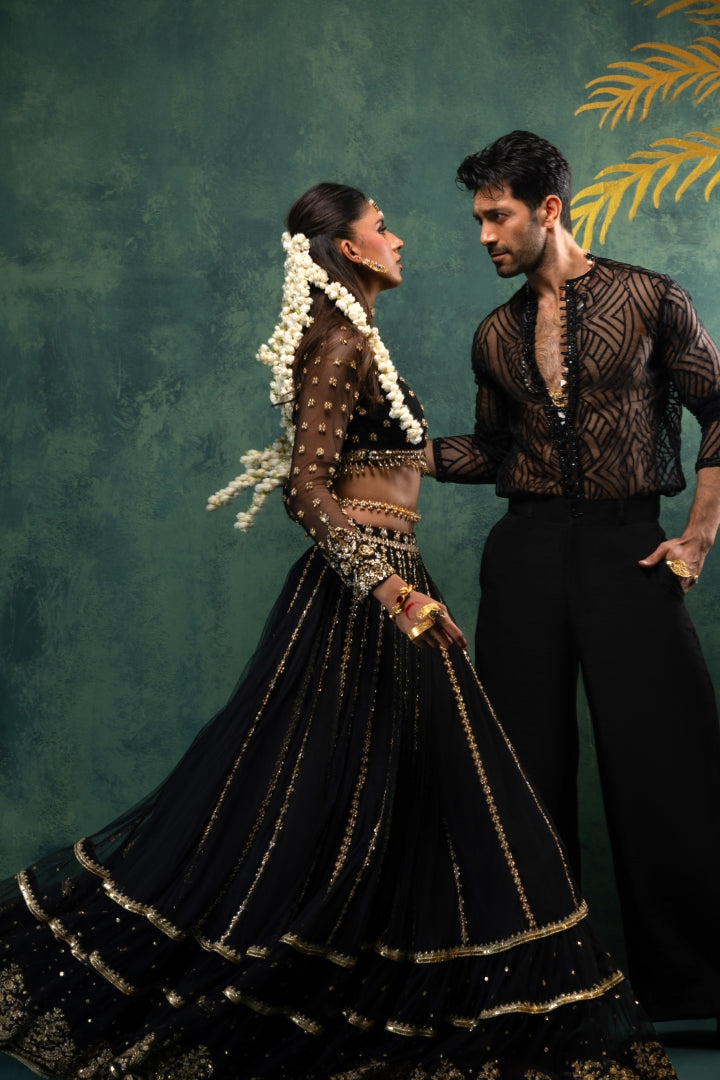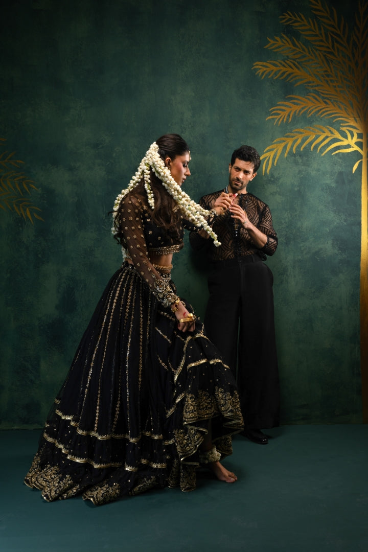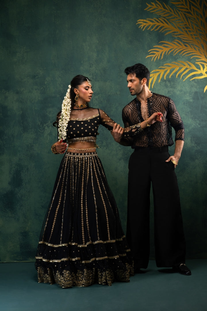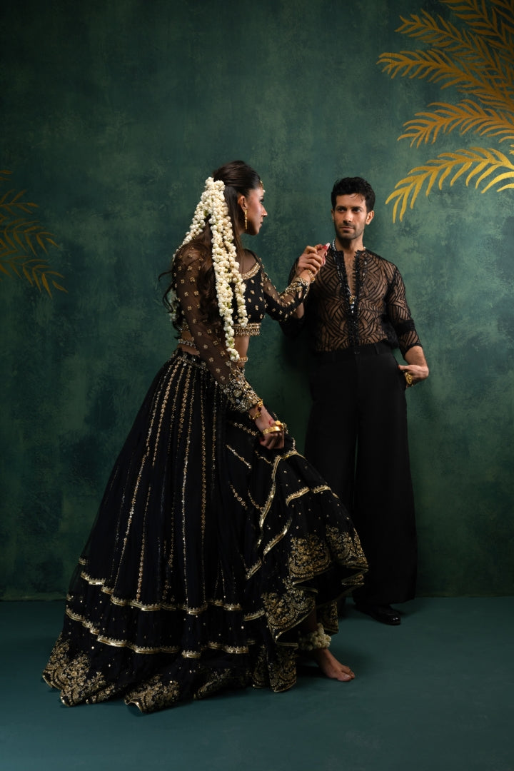 Draped in dusk, detailed in golden hues- Tareek is a midnight black masterpiece, adorned with intricate golden detailing. It carries the bold spirit of tradition, wrapped in regal finesse and designed to leave a lasting impression.